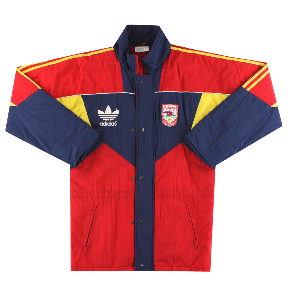 Condition Details – Pristine colour, very smooth material, zip does not work, badges are excellent Bench coat released during the 1990’s when Arsenal were competing in the First Division/Premier League, winning the title in the 1990-91 and 1997-98 seasons.
